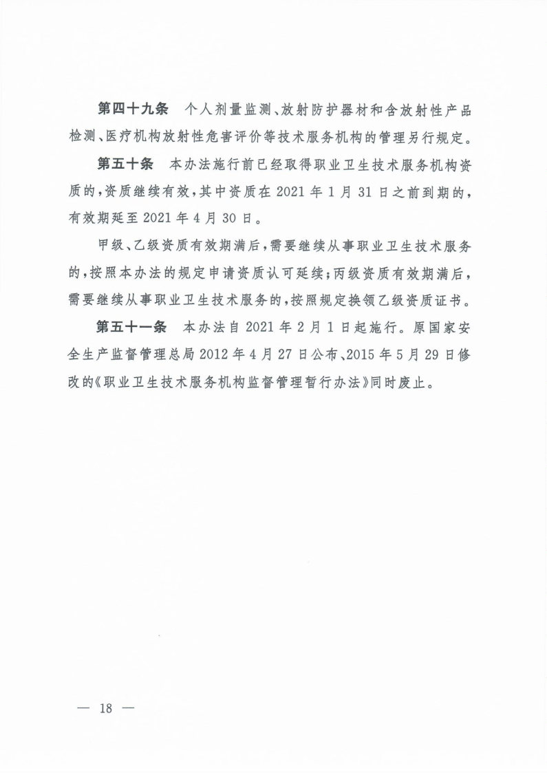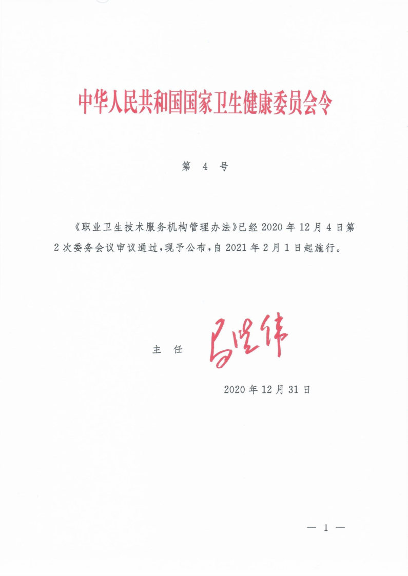 職業(yè)衛(wèi)生技術(shù)服務(wù)機(jī)構(gòu)管理辦法(國家衛(wèi)生健康委令第4號)